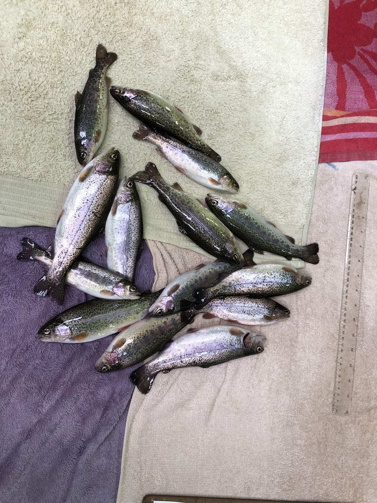 The surrounding countryside was beautiful, with lush green grass, dairy cows and sweet little babbling brooks everywhere you look. Apparently the climate (lots of water, cold winters and mild summers) makes it perfect for Trout breeding. Very interested to learn that Rainbow Trout are an introduced species and their wild population is artificially maintained through a government run breeding program. Not sure what the environmental implications are but the kids loved it.