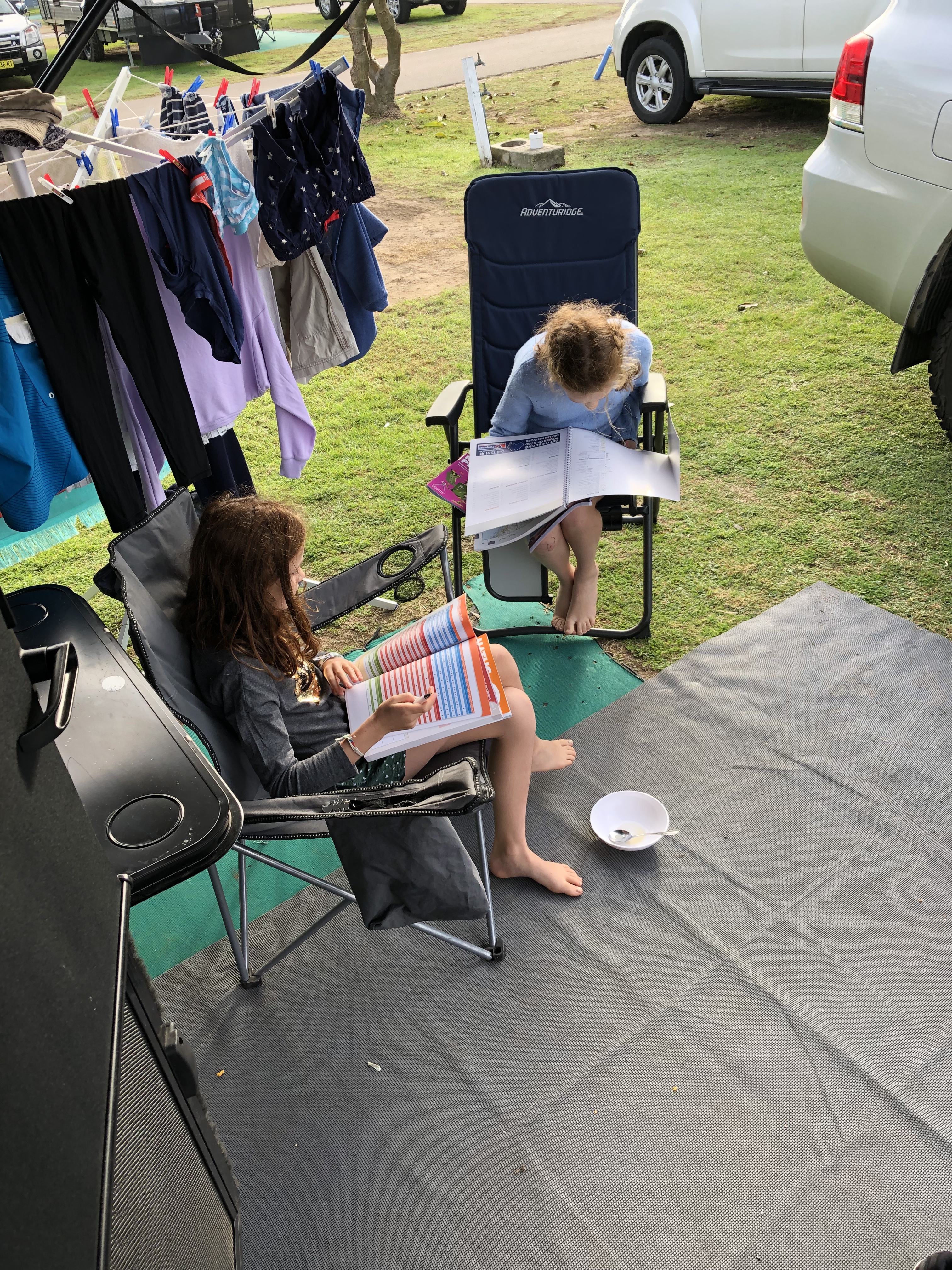 And that pretty much concludes the week. Minor incident in Dorrigo: Katie was working and the kids doing homework, so I set up our washing line on the footpath of a side street and then downloaded the complete works of Charles Dickens ($0.99 off Amazon!) only to get accosted by the proprietor of the local hotel letting me know it was ‘illegal’ to have washing on the footpath! And that brings us to Bellingen where we spent two days with families from school back home.