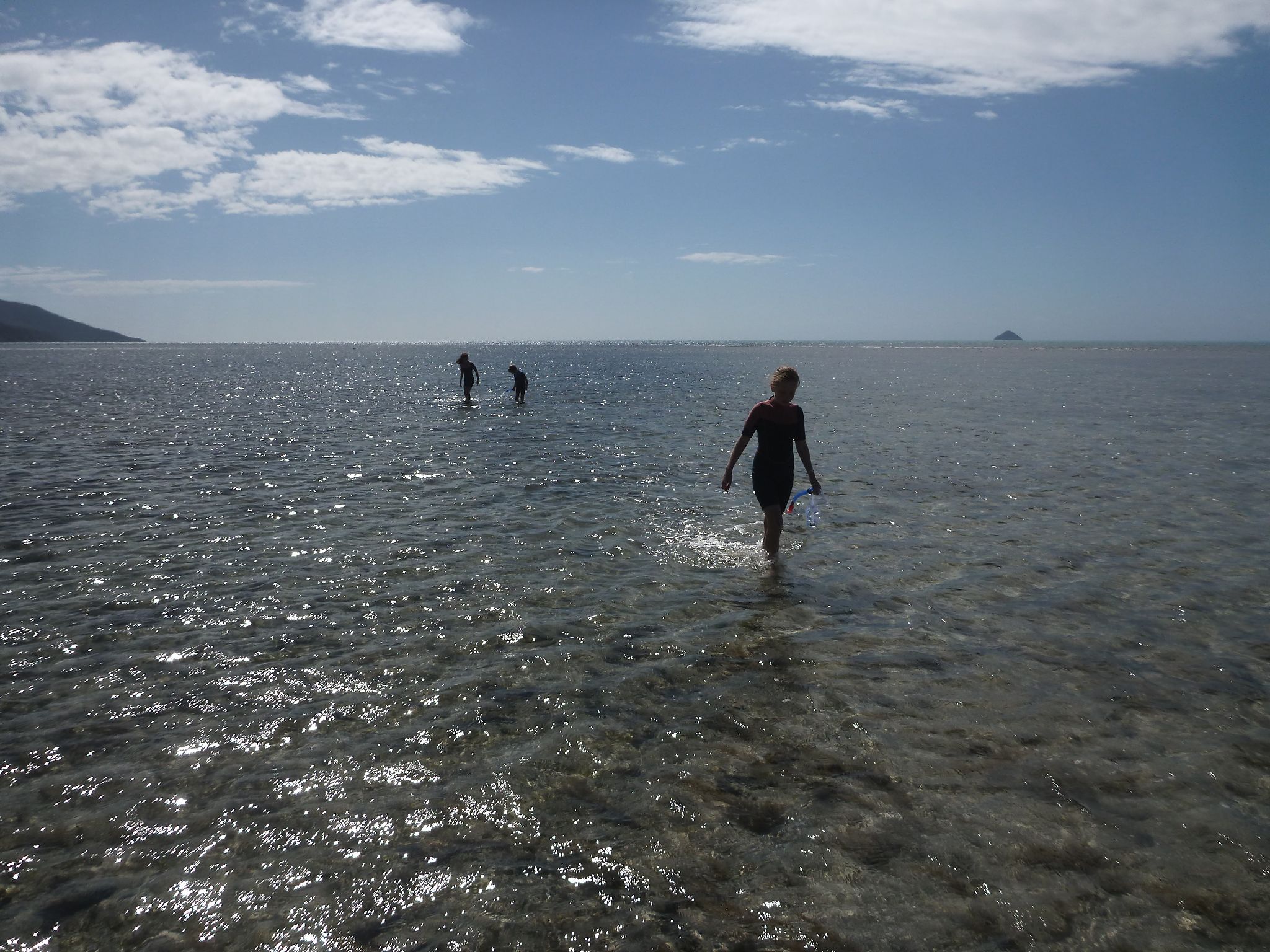 We passed through Airlie Beach pretty quickly, just pulled into the Big4 and enjoyed some relaxation while the kids went water sliding. Then we went to a slightly more off the beaten track location, recommended by my parents, Cape Gloucester. Here we had the rather comical (my view) experience of trying to go snorkelling off the beach (as advised by locals)…only it was dead low tide, the result being a 100m walk across broken coral with bare feet before we even came to the reef, by which time we were all so cut and bleeding we felt it necessary to turn around and come back again.