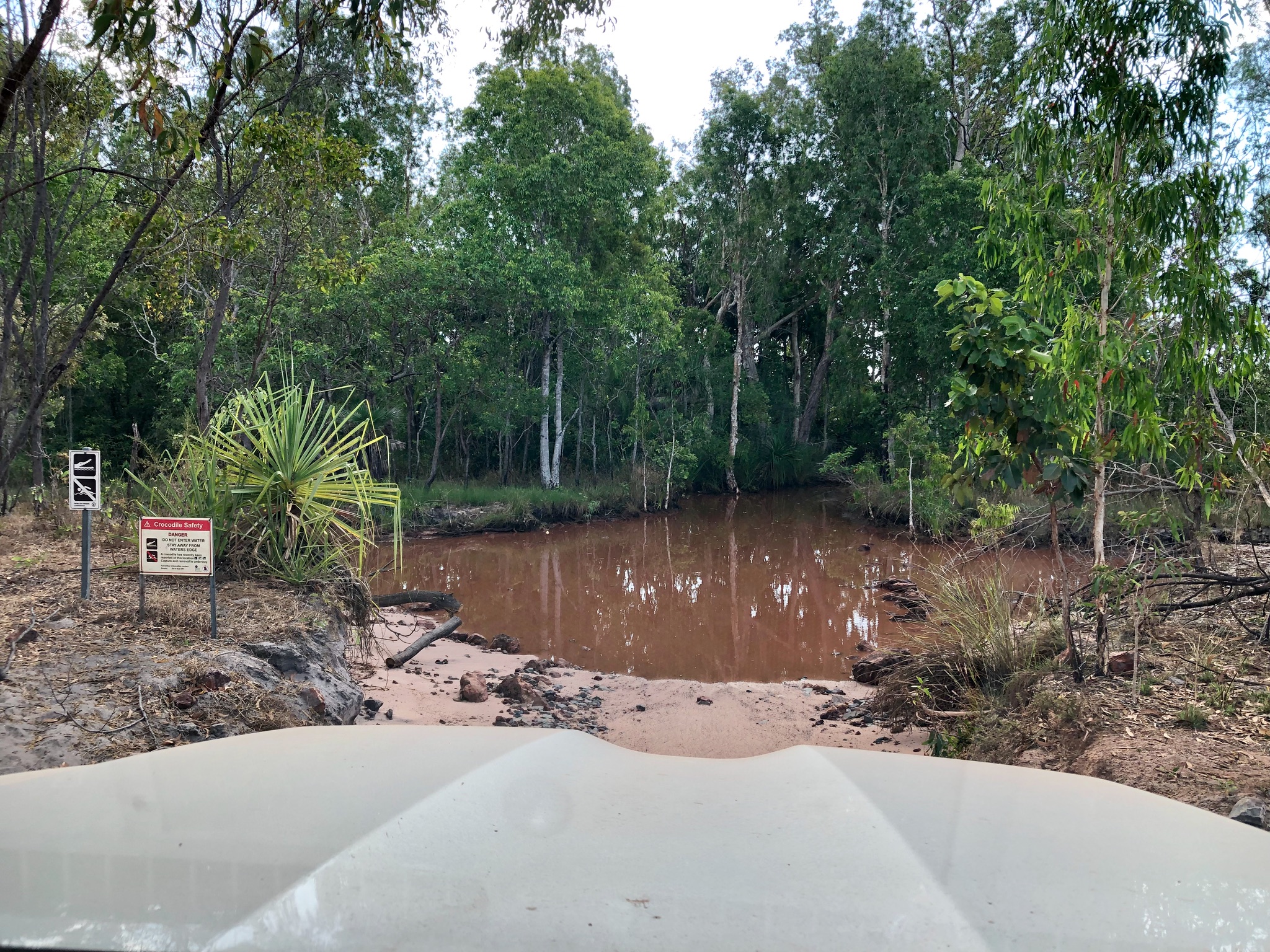 There was no obvious limitation as to how long Bum Dams could be pursued, but to break things up a bit, we did a day 4WDing. Straight off the bitumen, the first water crossing had it all: exit point not visible from entry point, muddy water so cant see the depth, and crocodile warning signs everywhere.