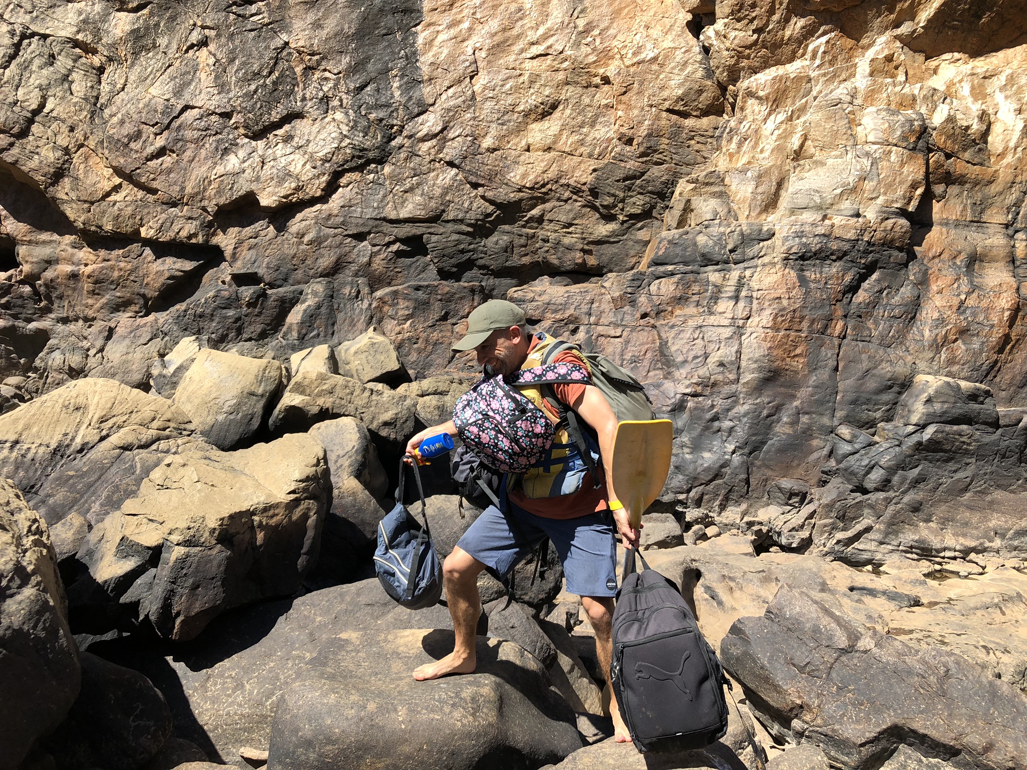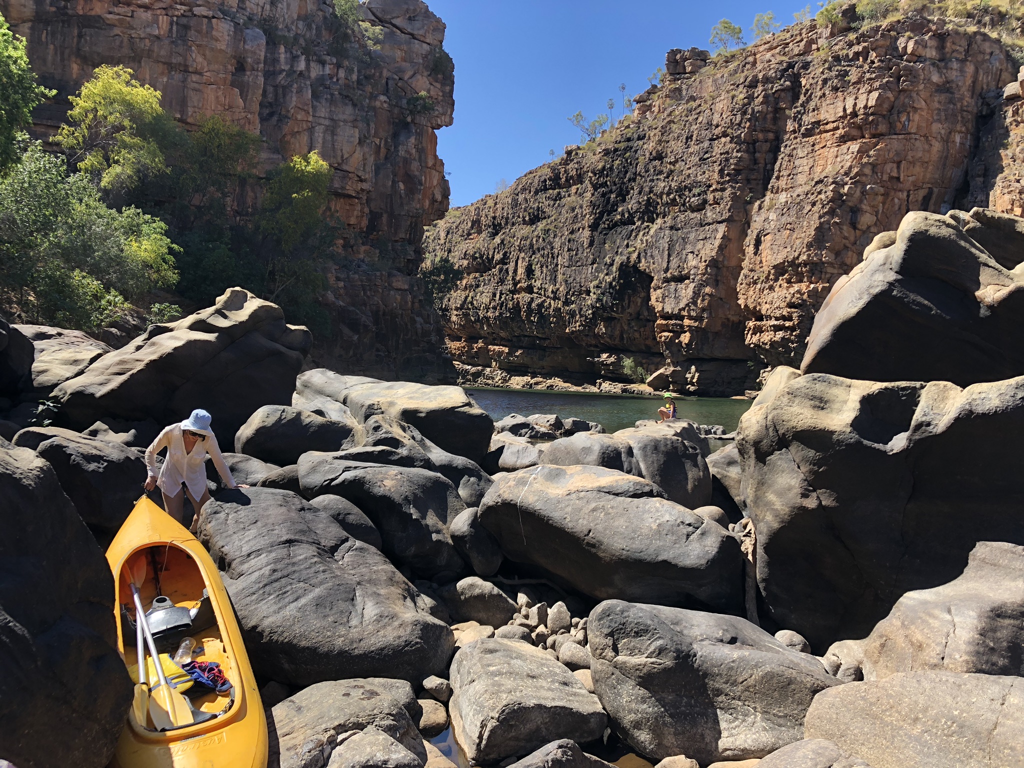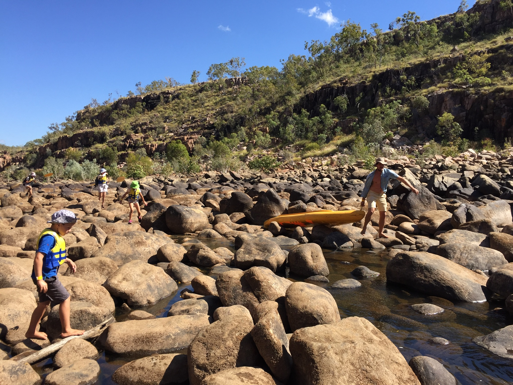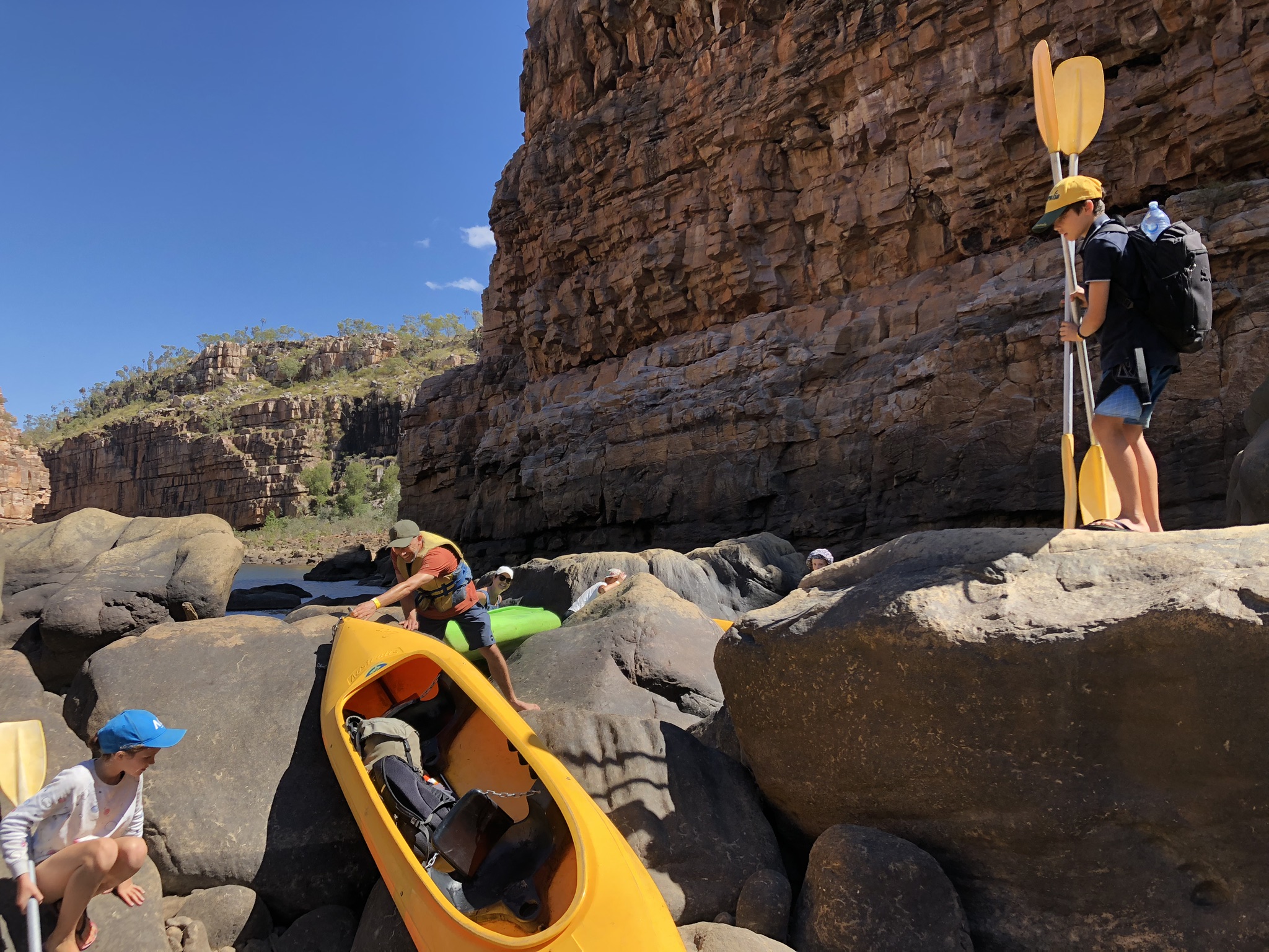 Heavily armed and dangerous with 5 canoes, 10 paddles, 4 adults, 6 children, tonnes of water and provisions enough to make the English Navy proud, we set off. The briefing was that there were 5 gorges to paddle across with ‘portages’ in between where we would need to carry the canoes to the next gorge. Portage, in my minds eye, is something English Explorers used to frequent in exotic locations and involves sipping pimms and eating cucumber sandwiches while hired local help carries your canoe and provisions over an obstacle. The genius plan was the kids were going to be the hired help, and by allocating 4 kids to a canoe and with each child making multiple trips, we would be across.