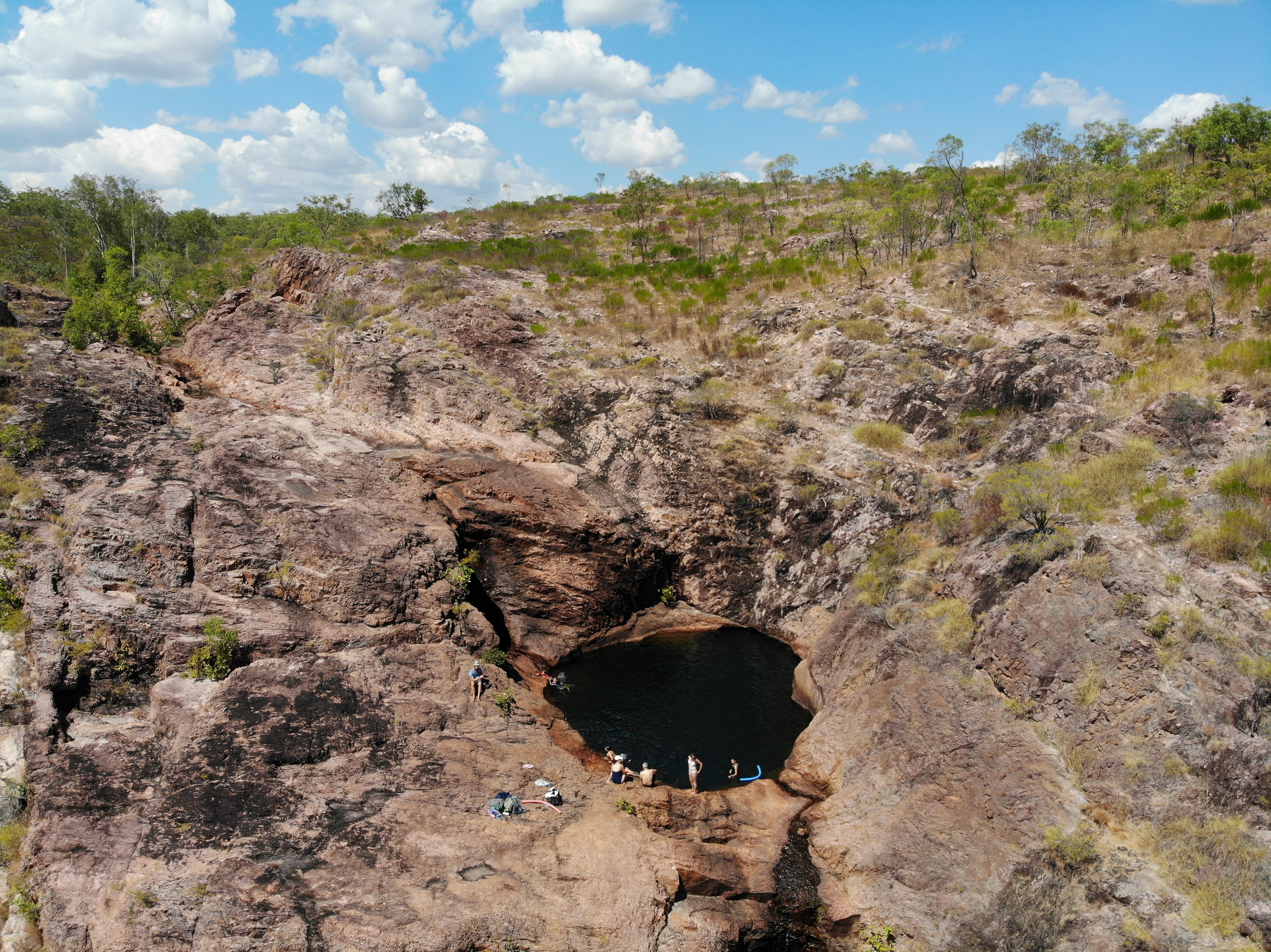 And that brings us to our final stop, the much acclaimed Litchfield National Park. And it was here that we invented Bum Dams. Now the May-Moors have a long tradition in determining that a particular river or other was in the wrong spot, and needed to be dammed and diverted along a more suitable path. We have been occupied by this pursuit right across the world, from the Scottish highlands to the mountain streams of New Zealand, the tropics of Asia and the colder climates of Tasmania. But never before had we encountered the smooth, impenetrable and certainly immobile rock that makes up waterfalls and rock pools of Litchfield. A new technique was required, and looking around for the most suitable resource at hand to us, we found that it was bottoms!