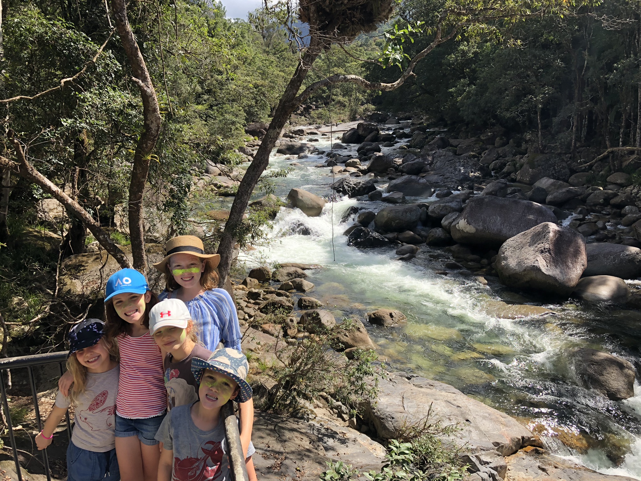 Cape Tribulation was the furthest north than anyone off their mooring was going to be and once we arrived the heavens opened and it rained rained rained. A gorgeous camp site by the beach where swimming is not permitted due to the crocs, without any fencing and a croc living about 100m away. Thankfully we learned of this as we were leaving. The kids loved entertaining themselves under whatever shelter they could find and when the rain finally stopped we swam in beautiful isolated swimming hole, ate fruit gelato from a farm and packed up for the Atherton Tablelands.